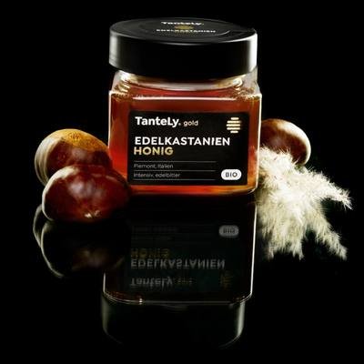 Im Frühjahr, wenn die Sonne die Bergrücken in der Region Piemont am Fuss der Alpen wärmt, beginnen die Edelkastanien mit der Blüte. Die Bäume lieben dieses Klima und gedeihen fast ausschließlich in mediterranen Bergregionen. Aus dem Nektar der unscheinbaren Blütenkätzchen und Honigtau an den Ästen und Nadeln der Pflanzen machen die Bienen einen kräftigen, unverwechselbaren Honig. Neben Bienen bestäuben übrigens noch über 100 weitere Insektenarten die Edelkastanie und tragen damit ihre Teil zur Entstehung dieser Honig-Spezialität bei. Das Aroma des Edelkastanienhonigs erinnert an den warmen, edelherben Charakter von Maronen.