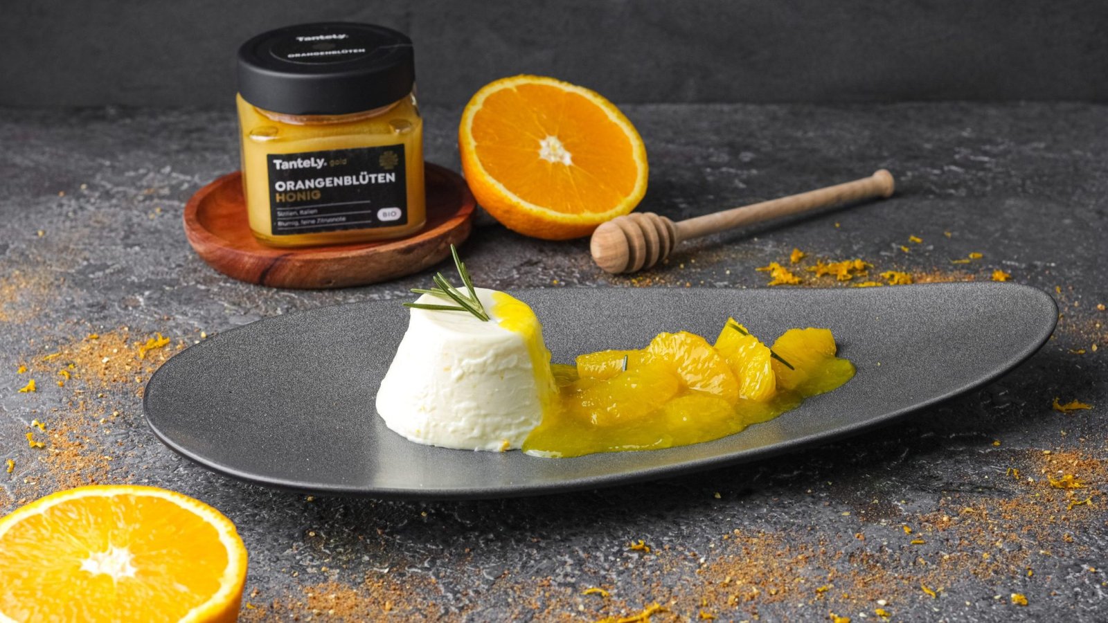 Rosmarin Orangenhonig Panna Cotta