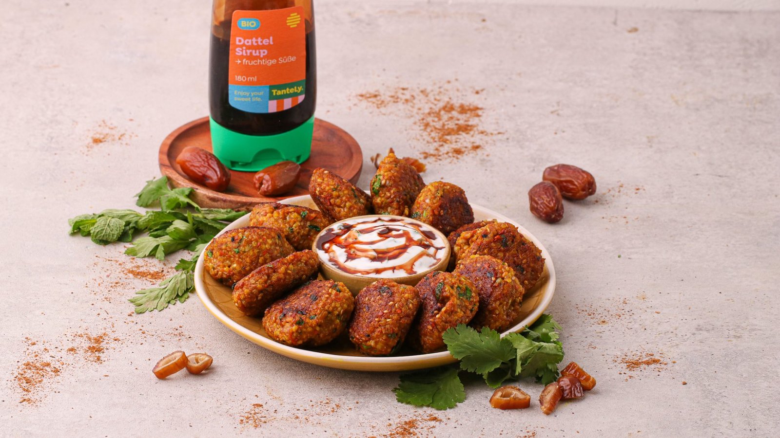Vegane Kürbis-Hirsefalafeln mit Dattel-Koriander Dip